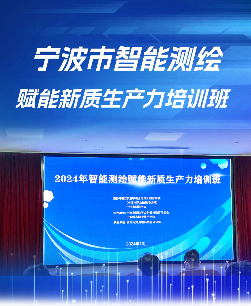 發(fā)布日期:2024.10.31 近日,由寧波市測繪學(xué)會、寧波市職業(yè)技能培訓(xùn)港主辦的智能測繪賦能新質(zhì)生產(chǎn)力培訓(xùn)班于寧波城市職業(yè)技術(shù)學(xué)院順利舉行。百余位寧波市測繪企業(yè)崗位從業(yè)人員匯聚一...