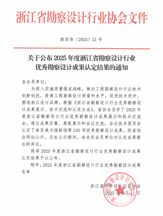 發(fā)布日期:2025.08.26 近日,2025年度浙江省勘察設(shè)計(jì)行業(yè)優(yōu)秀勘察設(shè)計(jì)成果評(píng)選結(jié)果正式公布。由我院牽頭設(shè)計(jì)的“奉化江堤防整治工程鄞奉交界段”項(xiàng)目,繼榮獲寧波市優(yōu)秀勘察設(shè)計(jì)獎(jiǎng)之...