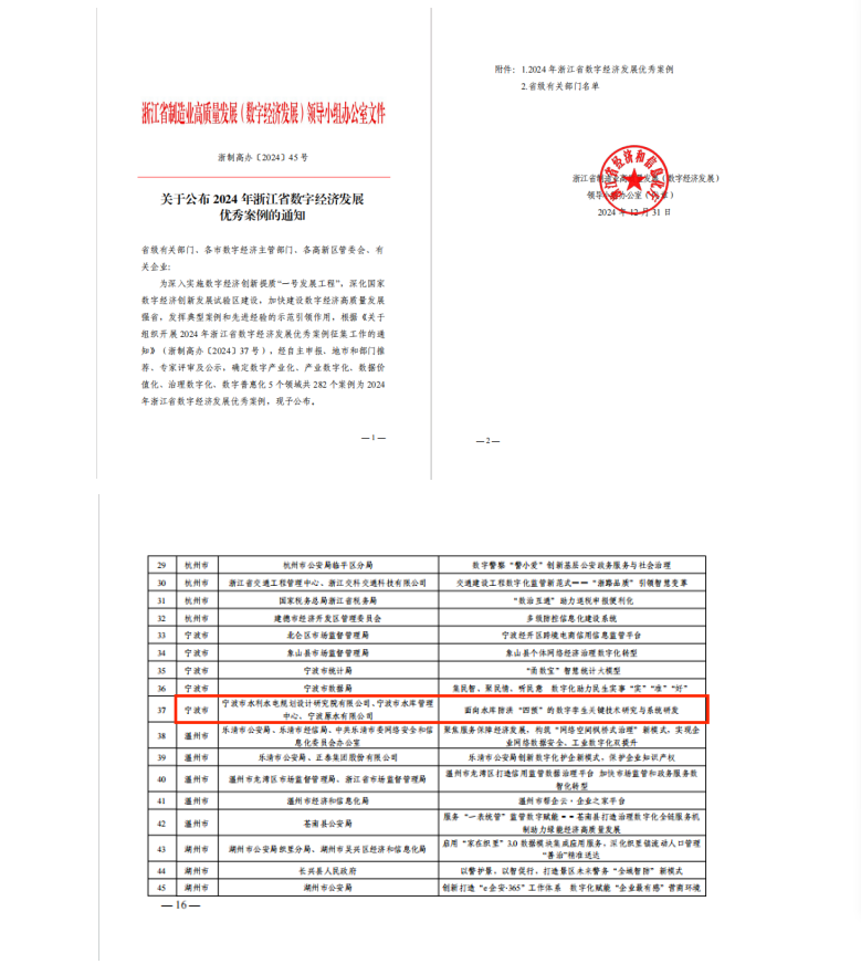 在產(chǎn)品創(chuàng)新方面,分別獲得第三屆寧波市專利創(chuàng)新大賽專利優(yōu)秀獎(jiǎng)、“寧波市優(yōu)秀軟件產(chǎn)品”稱號(hào)、2024年“數(shù)據(jù)要素x”大賽浙江分賽獲優(yōu)勝獎(jiǎng),入選2024年度浙江省水利先進(jìn)適用技術(shù)推廣指導(dǎo)目錄、2024年度寧波市優(yōu)質(zhì)產(chǎn)品推薦目錄和2024年浙江省數(shù)字經(jīng)濟(jì)發(fā)展優(yōu)秀案例近20項(xiàng)。