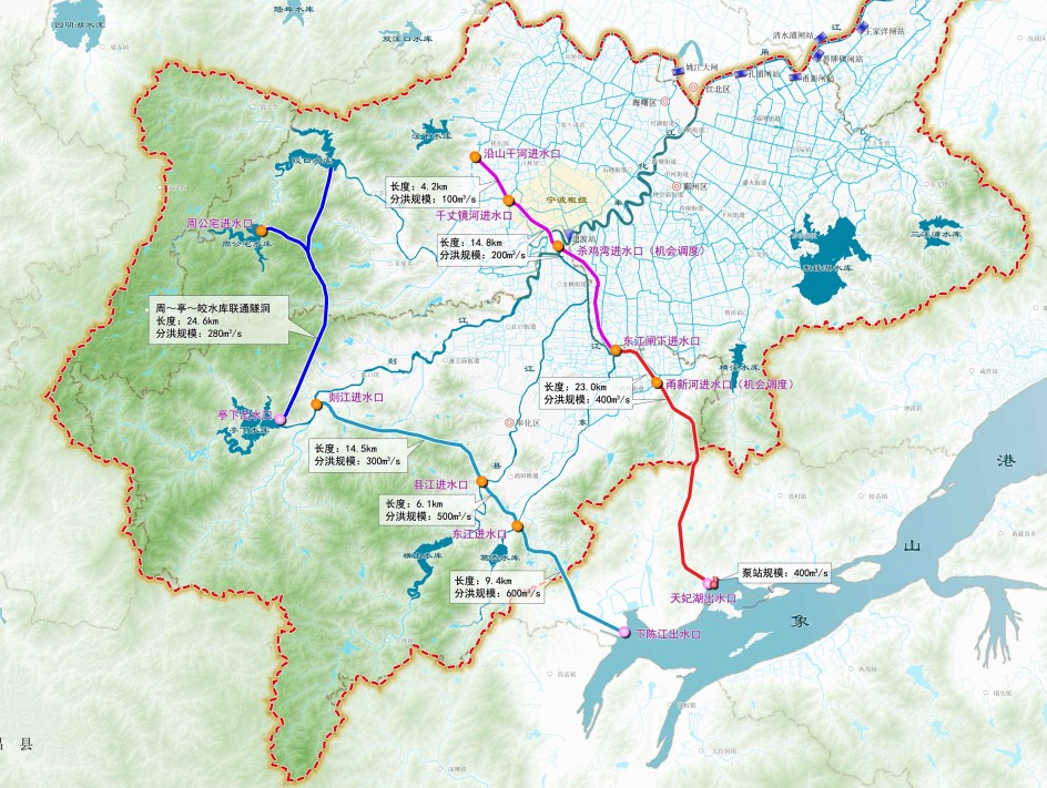 甬江流域南排通道工程項(xiàng)目建議書:該工程為《甬江流域防洪治澇規(guī)劃(2021-2035 年)》確定的甬江流域最大的分洪工程,工程擬設(shè)置東、西兩條分洪線路,總長(zhǎng)約96.6公里,總規(guī)模1000立方米每秒。工程實(shí)施后,與規(guī)劃內(nèi)工程聯(lián)合運(yùn)用,將有效提升流域和區(qū)域防洪排澇能力。