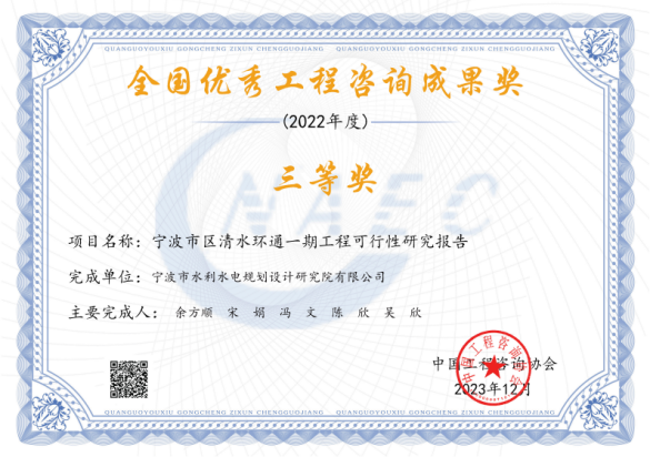 在工程項(xiàng)目方面,獲得2022年度全國(guó)優(yōu)秀工程咨詢成果獎(jiǎng)、2024年度寧波市優(yōu)秀勘察設(shè)計(jì)獎(jiǎng)、2024年浙江省勘察設(shè)計(jì)行業(yè)優(yōu)秀勘察設(shè)計(jì)”綜合類成果獎(jiǎng)、寧波市優(yōu)秀水利工程設(shè)計(jì)二等獎(jiǎng)、“浙江省文明標(biāo)化工地”稱號(hào)、“2024年度寧波軌道交通市域鐵路工程立功競(jìng)賽先進(jìn)集體”等各類獎(jiǎng)項(xiàng)十余項(xiàng)。