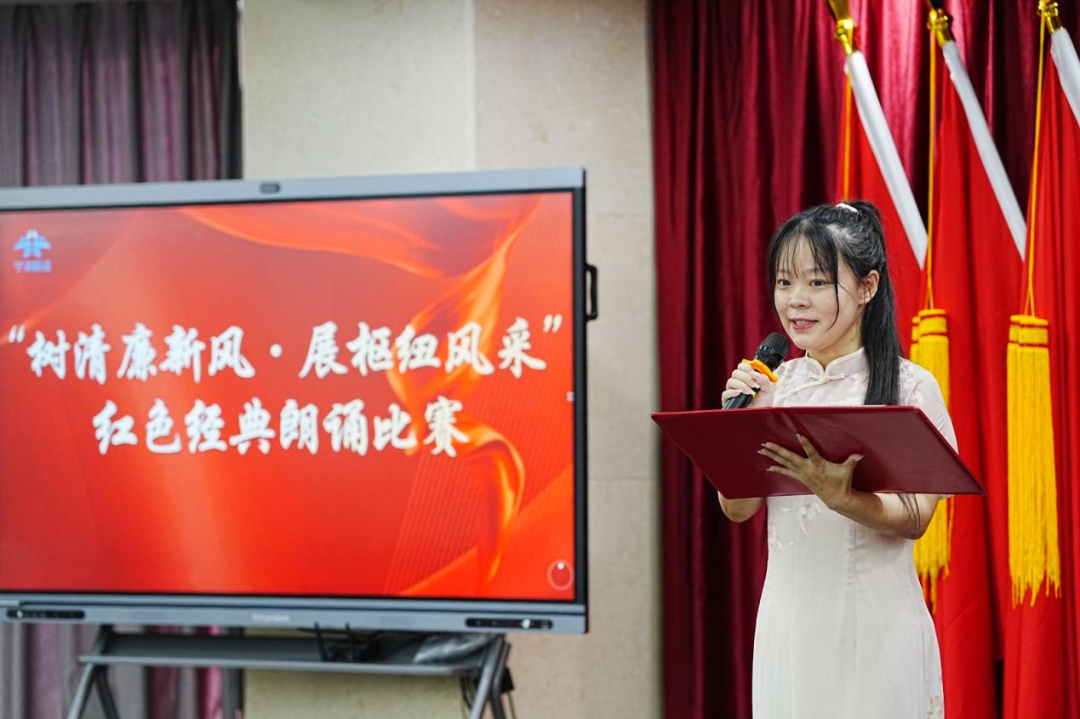 隨后的“樹清廉新風(fēng)·展樞紐風(fēng)采”紅色經(jīng)典朗誦比賽中,匯聚了來自樞紐公司與參建單位的25名選手。我院選送的作品緊扣“樹清廉新風(fēng)”主題,由工程院唐楚珺與規(guī)劃院李小杰兩位青年職工擔(dān)綱朗誦。備賽期間,二人利用業(yè)余時(shí)間精研稿件,雕琢細(xì)節(jié),并精心設(shè)計(jì)朗誦形式,反復(fù)演練,積極備戰(zhàn)。