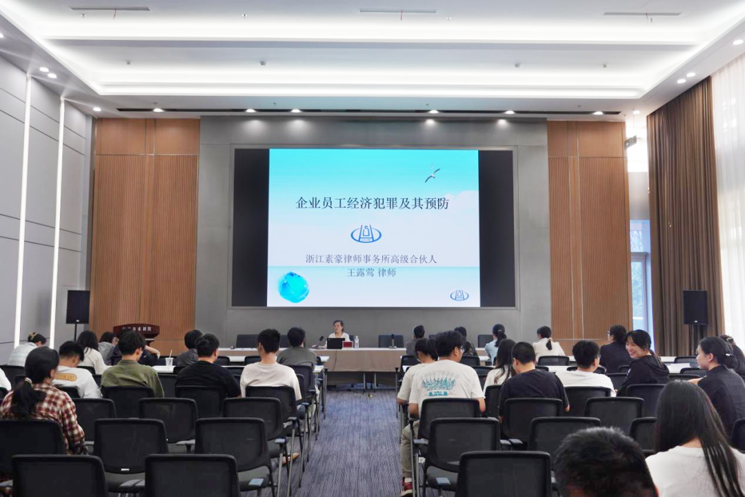 浙江素豪律師事務(wù)所高級合伙人、寧波市勞動人事和社會保障專業(yè)委員會高級顧問王露鶯律師則為現(xiàn)場員工帶來了一場《企業(yè)員工經(jīng)濟(jì)犯罪及預(yù)防》專題宣講。