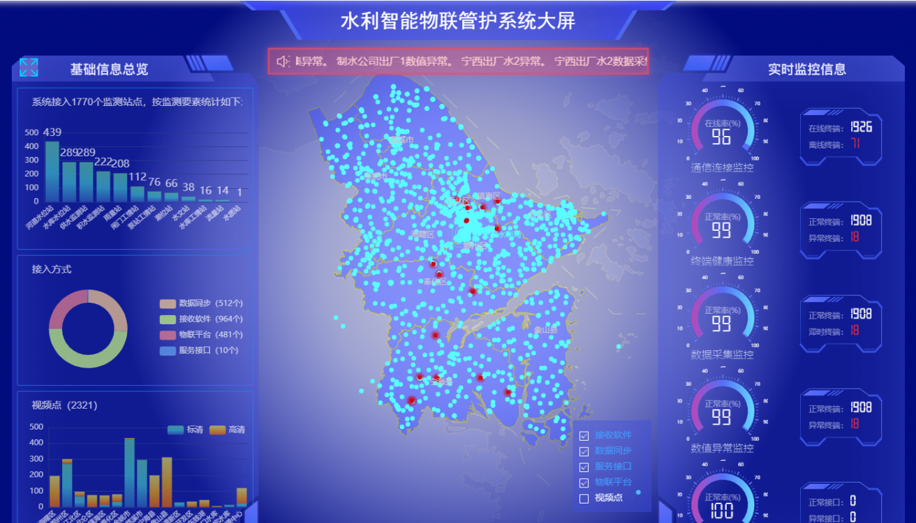 智慧水利物聯(lián)管護(hù)平臺(tái),對水利各部門、各廠商、各類型監(jiān)測設(shè)備的,健康狀態(tài)與數(shù)據(jù)傳輸?shù)冗M(jìn)行統(tǒng)一管理,實(shí)現(xiàn)水利要素實(shí)時(shí)“感知-互聯(lián)”,強(qiáng)化水利物聯(lián)感知監(jiān)管,為智慧水利建設(shè)提供基礎(chǔ)支撐。